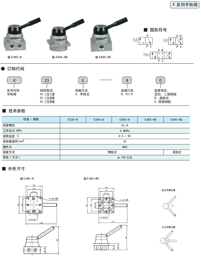 K34S-08D,STNC气动控制元件,K系列手转阀