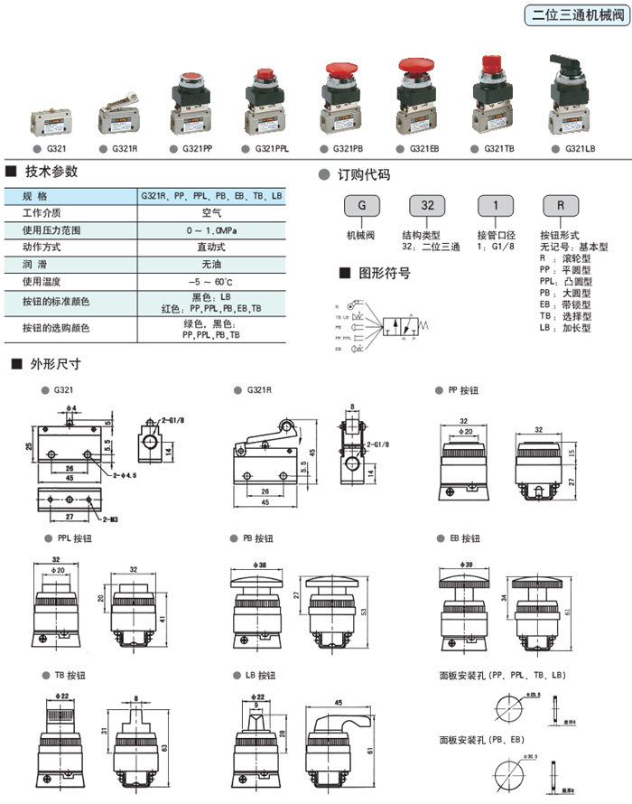 产品标题:G321PB,STNC气动控制元件,G321系列机械阀