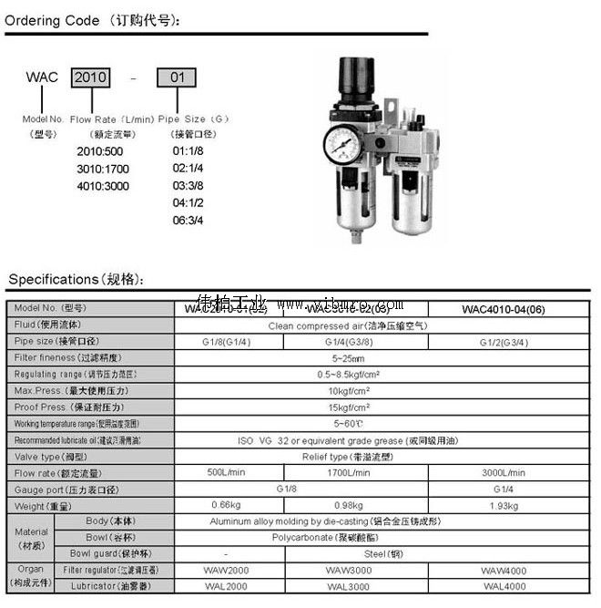 WAC3010-03,两联件,WPI空气处源元件